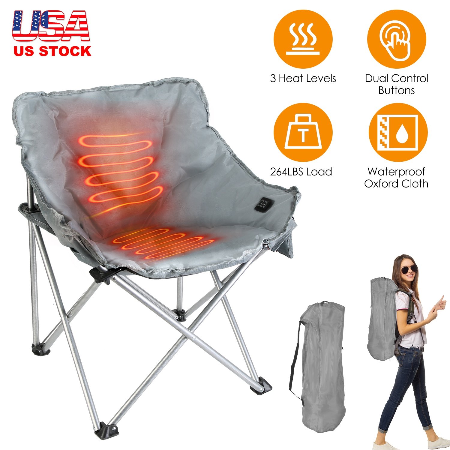 Heated Camping Chair For Adult Outdoor Activities Portable Folding Heated Chair With 3 Adjustable Heat Levels Heating Backrest Cushion Support 264LBS