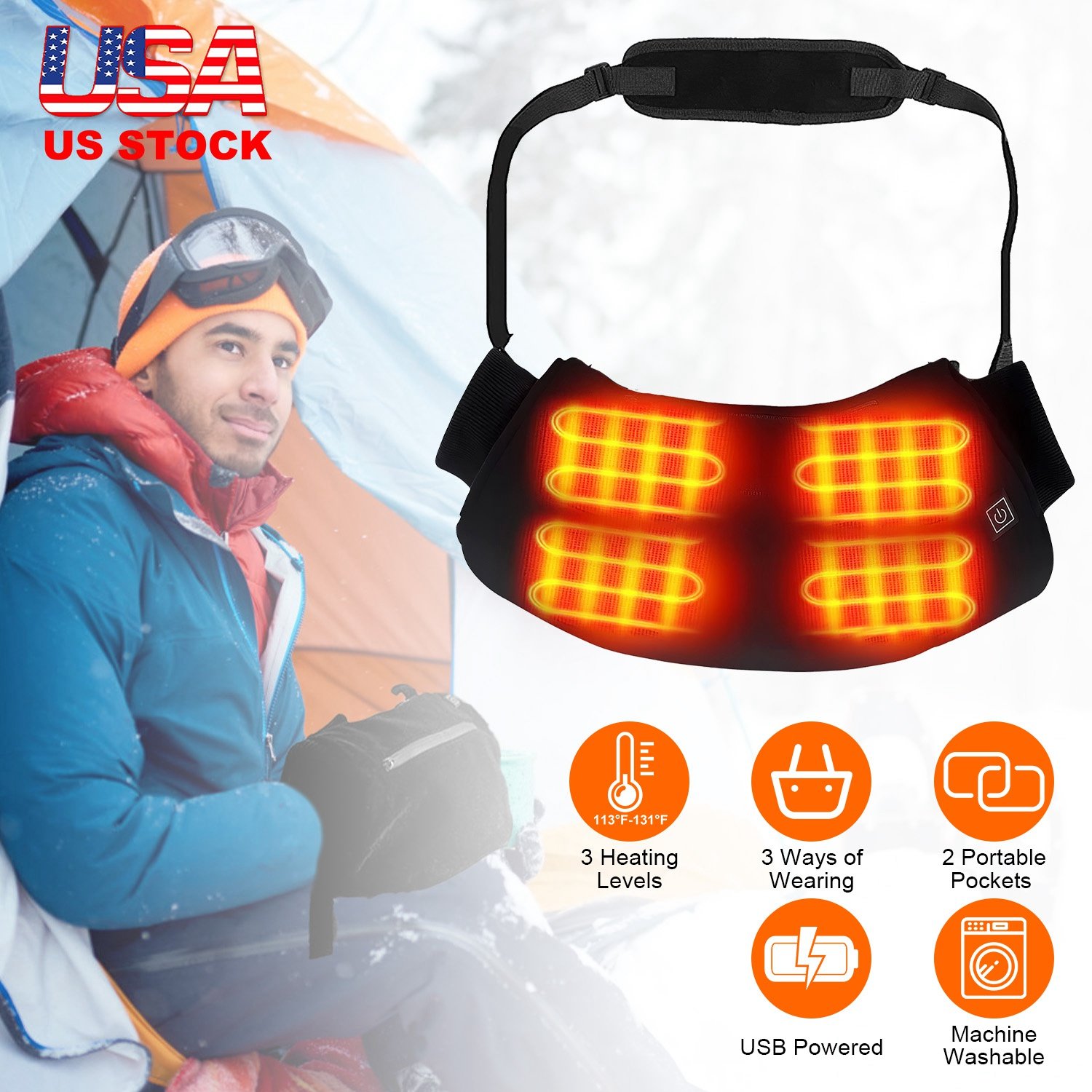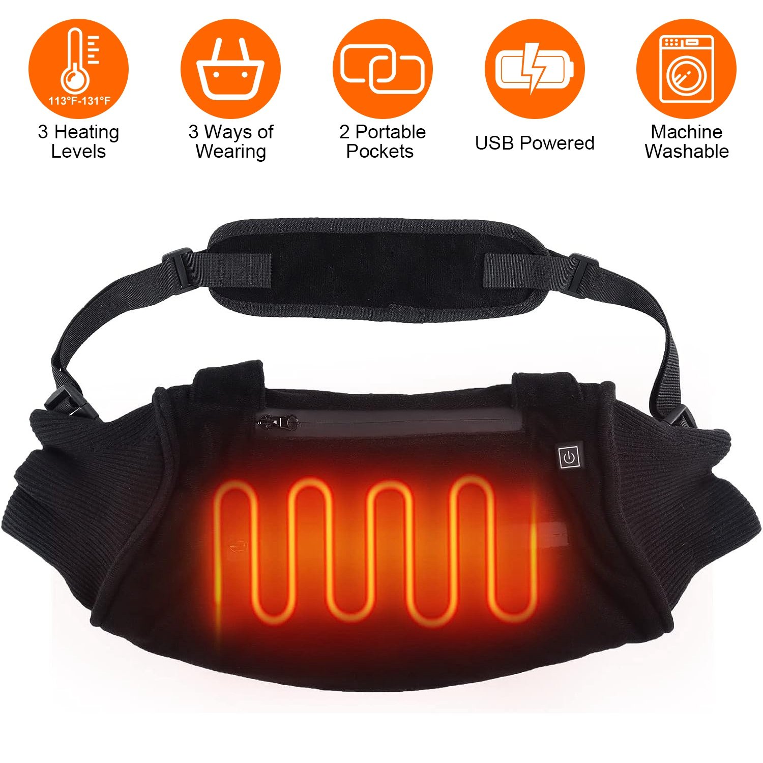 Have your feel chilly of your hand as winter approaches? Try our electric heated hand waemer for men and women! Made of super soft wool, comfortable and cozy in winter. Embedded with 4 heating pads and featured with 3 heating levels (122-131℉/113-122℉/104-113℉), our heated hand muff help focus heat to keep your hands from getting cold and offer adjustable temperature suit your warming need indoors and outdoors. One button control provides much convenience for operation. USB powered and machine washable. The 2 pockets enable you to carry your power bank and phone anywhere. The adjustable waistband makes it fit for most waist(27.2-49.2in). The 4 inbuilt buckles enable you to tie our hand warmer pouch around your waist, hang it on your neck or shoulder. Suitable for both indoors and outdoors. Thoughtful gift for family, friends, lovers and colleagues.